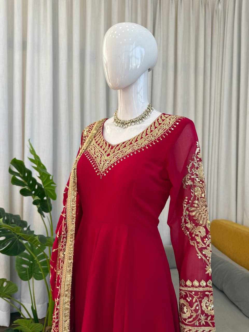 Name : RTC 5973 Foux Gorgette thread Work Anarkali