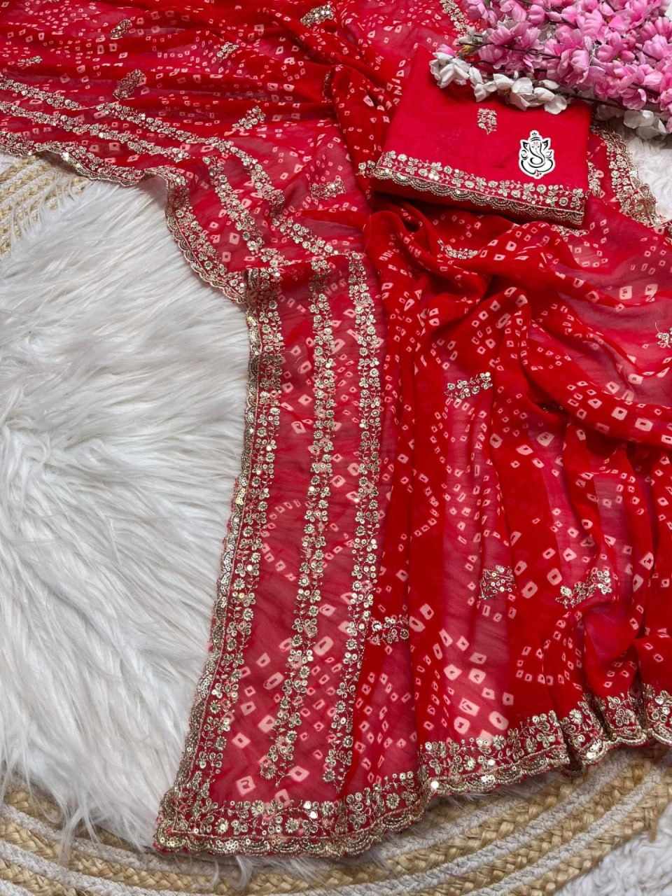 | Name : | PIYU P1033 LEHERIYA BANDHANI RED SAREE |