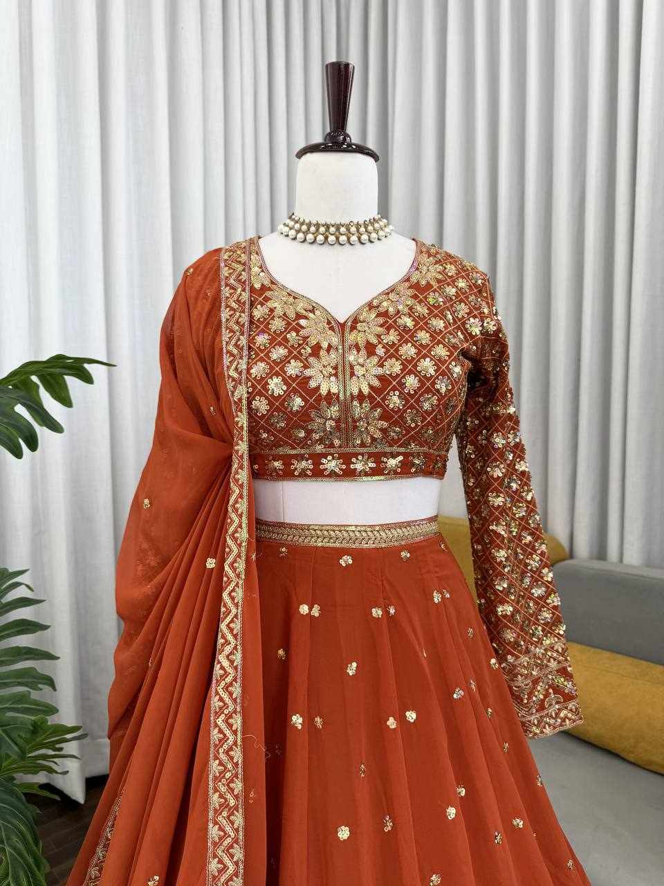 | Name : | QRC 375 Foux Gorgette Heavy Designer Lehenga |